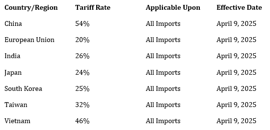 Table 1: U.S. Reciprocal Tariff Rates Imposed on Major Exporting Countries